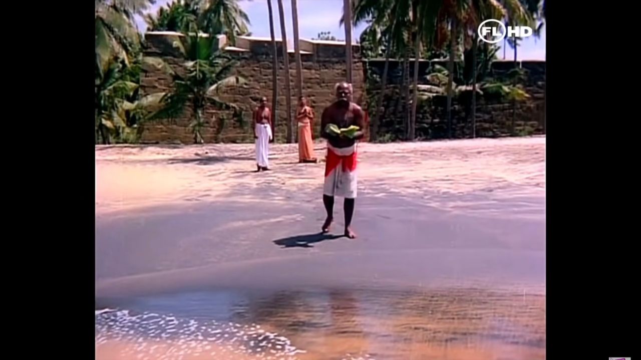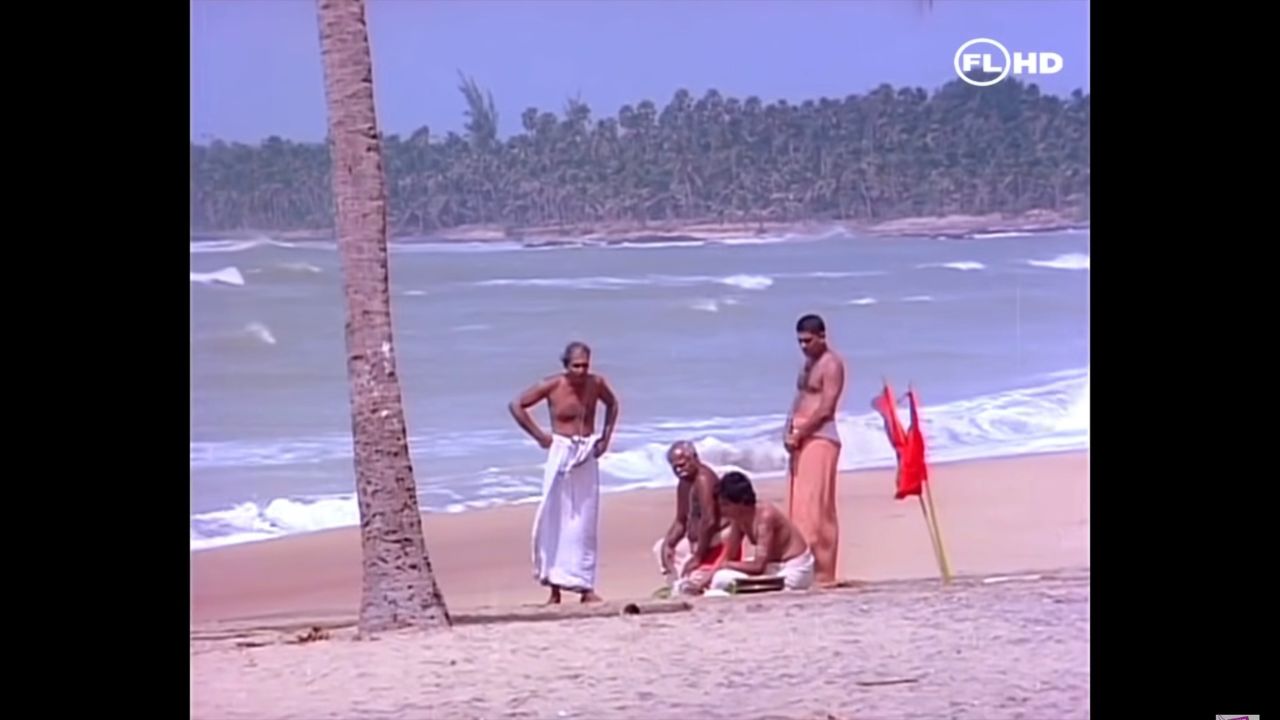 While everyone observes, Thampi walks into the sea carrying the funeral rice offering (Balichoru). Despite their pleas for him to stop, he keeps walking deeper into the sea. Thampi lets himself be taken by the sea, and the movie ends with the quote – “And, yet another third day.”